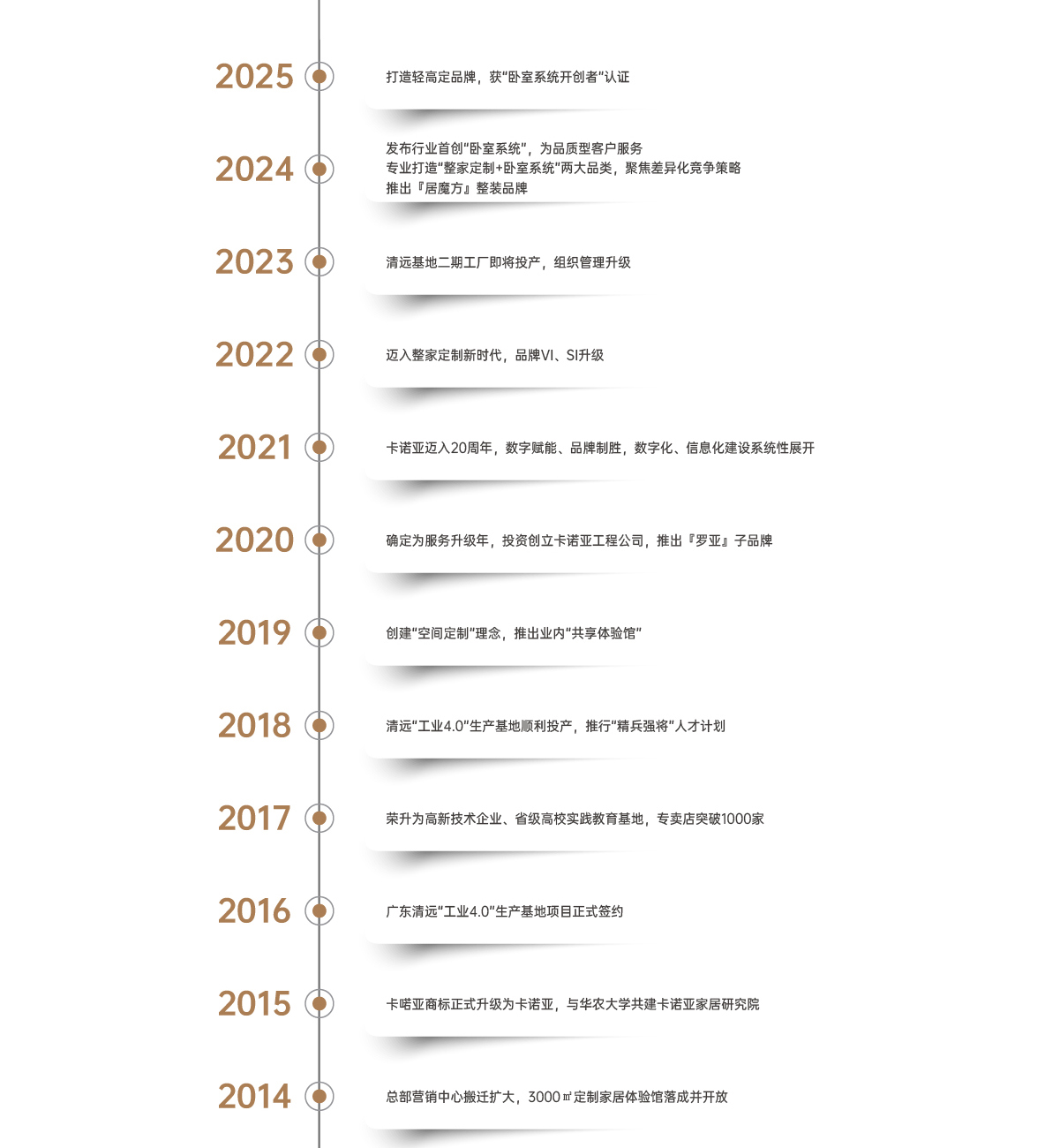 卡诺亚创立于2001年,是集研发、设计、生产和服务于一体的高新技术企业。旗下拥有居魔方整装、卡诺亚高端定制、罗亚全屋定制三大品牌。