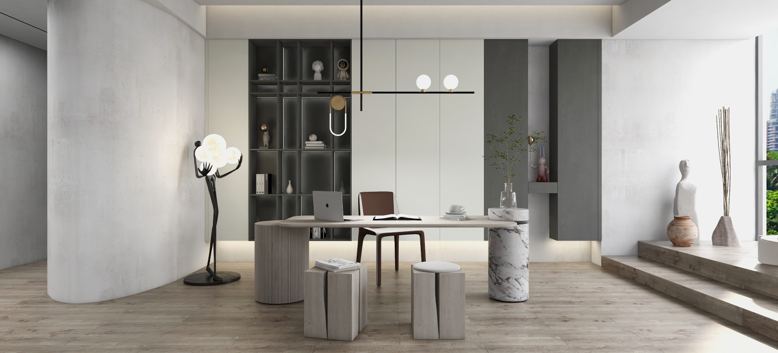 博洛·书房丨超高柜门,搭配细长拉手,格调拉满 舒缓的调性,细腻治愈又显高级,悬空到顶高柜,不留卫生死角,柔和亲肤的触感,让人一秒陶醉