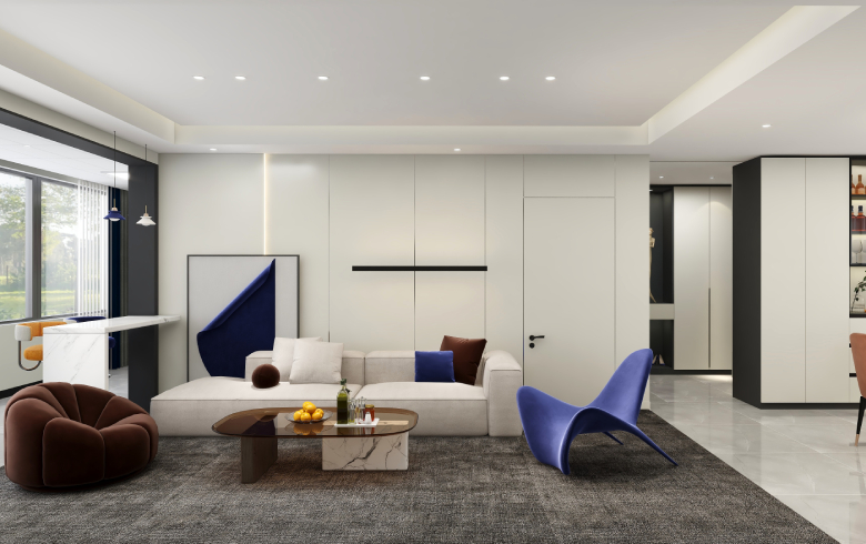 整体风格为现代简约风。整个空间做到了柜墙门一体化,色系统一协调。柜体柜门运用了涩黑,涩感白两个颜色。软装上冷暖色调随意搭配。材料上整个采用了糠醛板,环保、坚固还防潮。家里老人小孩都不用担心。收纳区域也是足够多,做到了美观且实用。设计理念:以人为本 ,设计有归属感的家,做有温度的设计师。整家之美|第五届卡诺亚杯全国家居空间设计大赛