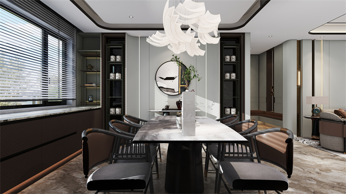 A:本次参赛作品是新中式风格,主要灵感来源于市场上的客户需求以及博大精深的中国传统文化。用整家全案的思维做新中式风格全屋定制,相对其他风格会更难,通过对新中式风格与业主需求进行巧妙的衔接,然后再创作,去风格化,再运用现代主义的设计手法来表达。